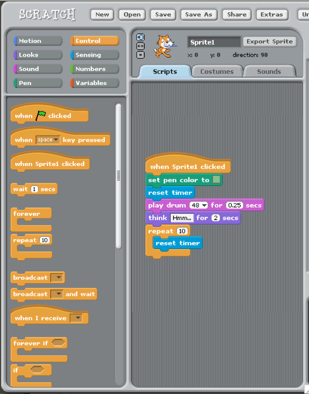 Here is an example of the interface of Scratch, a visual animation program for kids. It was developed for the Lifelong Kindergarten Group of the MIT Media Lab. The way that these functional shapes representing animation commands fit together like jigsaw pieces is just one example of how discretely functioning pieces of code can be depicted visually as an interrelated family of tools.
